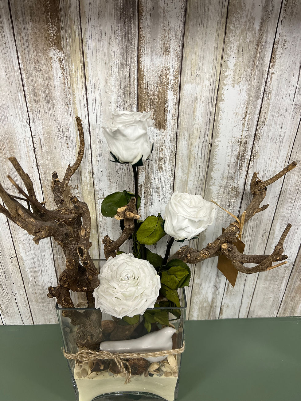 Trio de roses sous cloche XL au choix de la fleuriste.